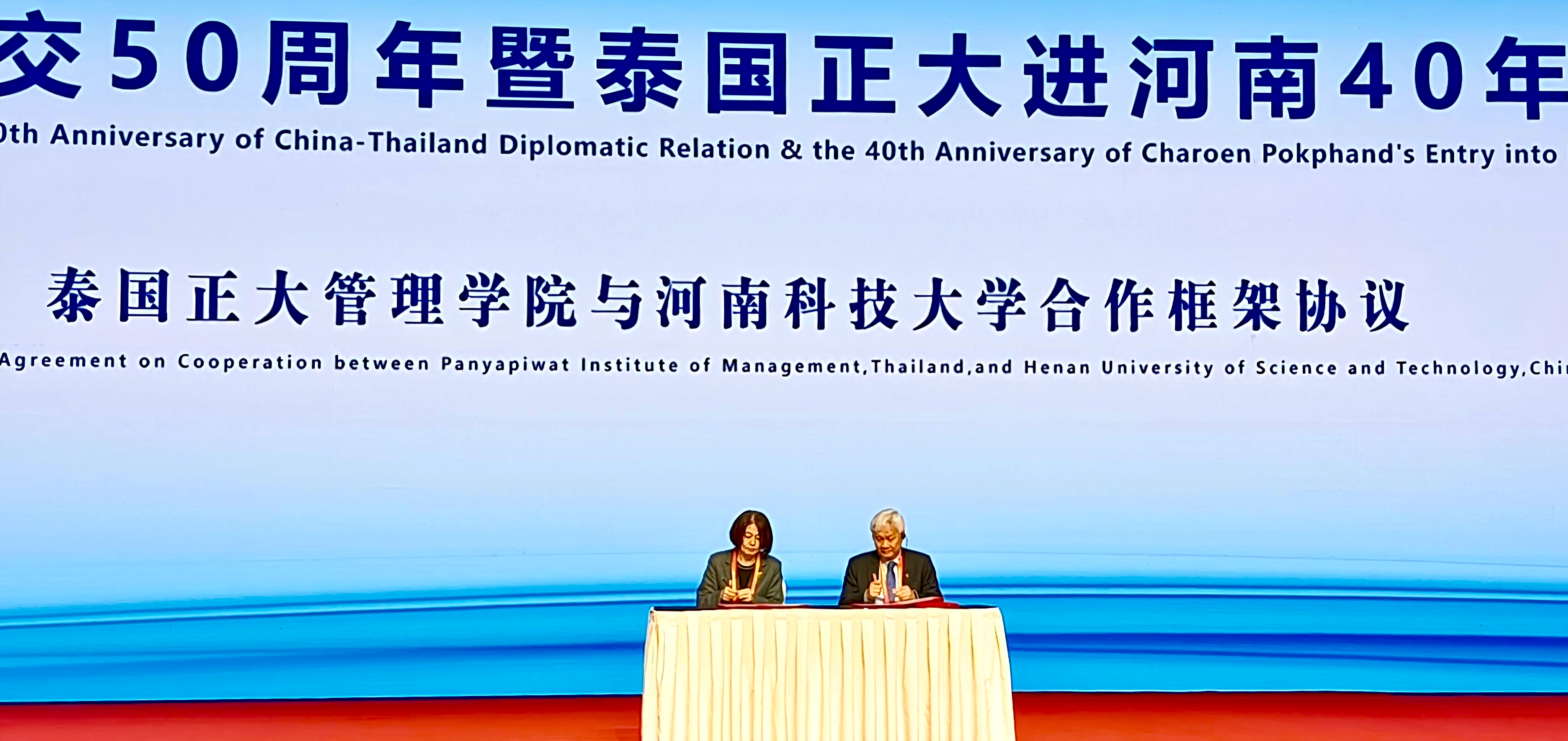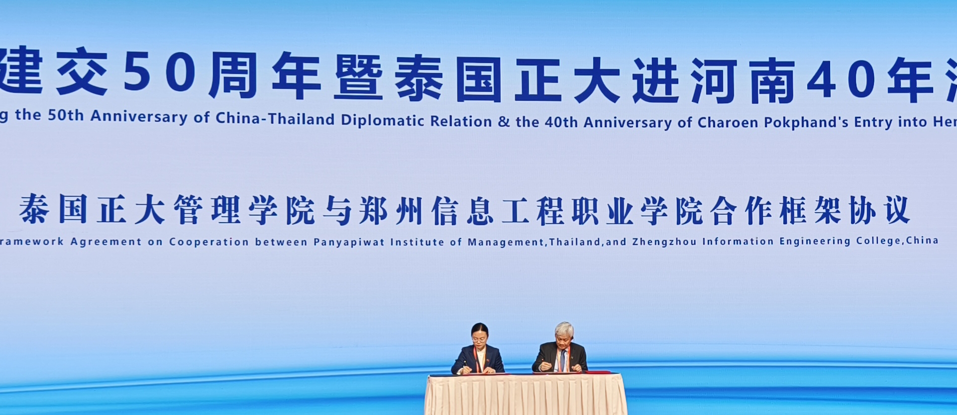 活动期间,来自洛阳市、开封市、漯河市政府的相关负责人分别作市情推介,分享各自发展优势,以及与正大集团在农牧食品、智能制造、城市开发等领域的合作成果。在签约环节,泰国正大管理学院分别与河南科技大学、郑州信息工程职业学院签署合作框架协议,进一步推动中泰在教育与人才培养方面的深度合作。